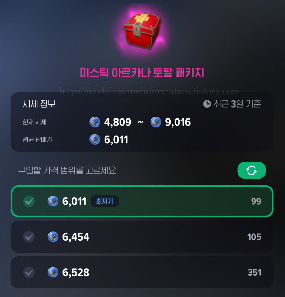 1. 거래소에서 ‘미스틱 아르카나 토탈 패키지’ 구매